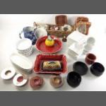 A good ceramic kitchen ware lot to include blue and white jug, white trays, and a quantity of tealights