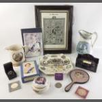 A mixed lot of ROYAL MEMORABILIA to include QUEEN VICTORIA in memoriam collage, a Prince of Wales and Alexandra commemorative jug, a Queen Victoria plate and others.