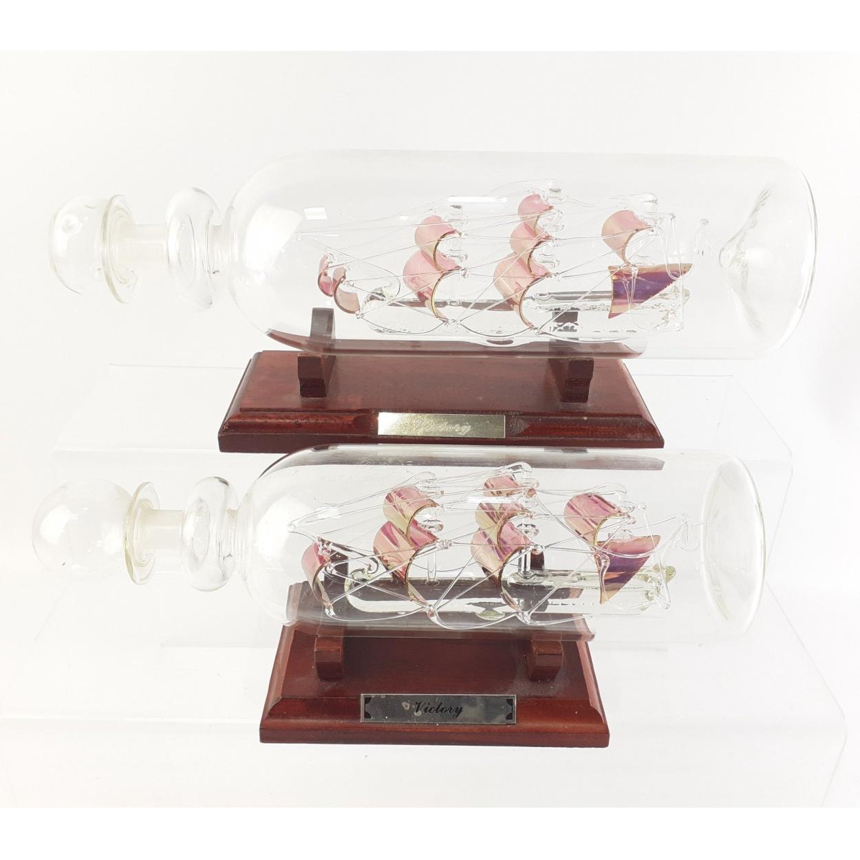 Two glass ships in bottles - both of The Victory. Taller stands 29cm approx