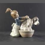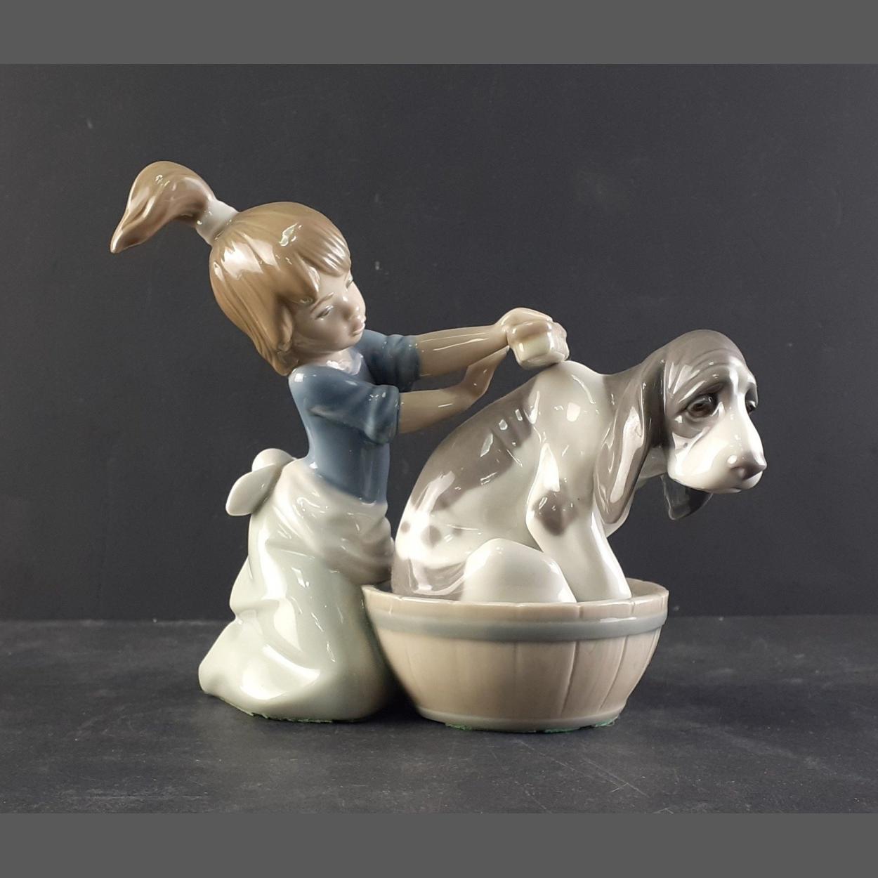 LLADRO pretty figure of young girl washing her dog. Stands 12cm tall and in good undamaged condition.