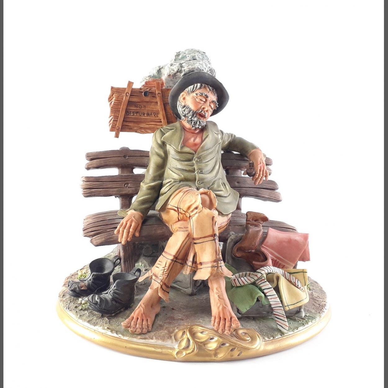 CAPO DI MONTE figure of a tramp on a bench signed G Cortese Italy. 21cm tall. In lovely condition with only a very minor break to pipe stem.
