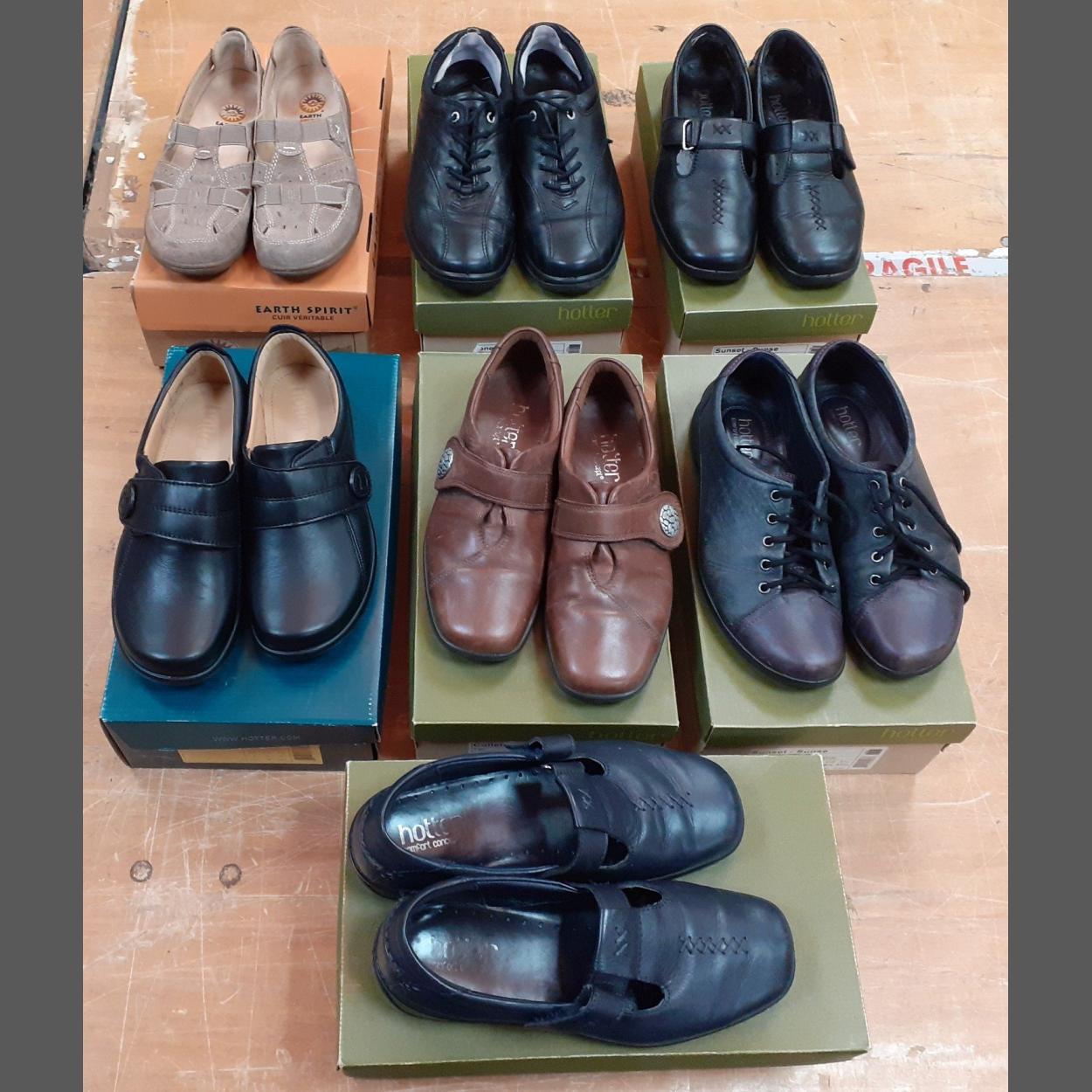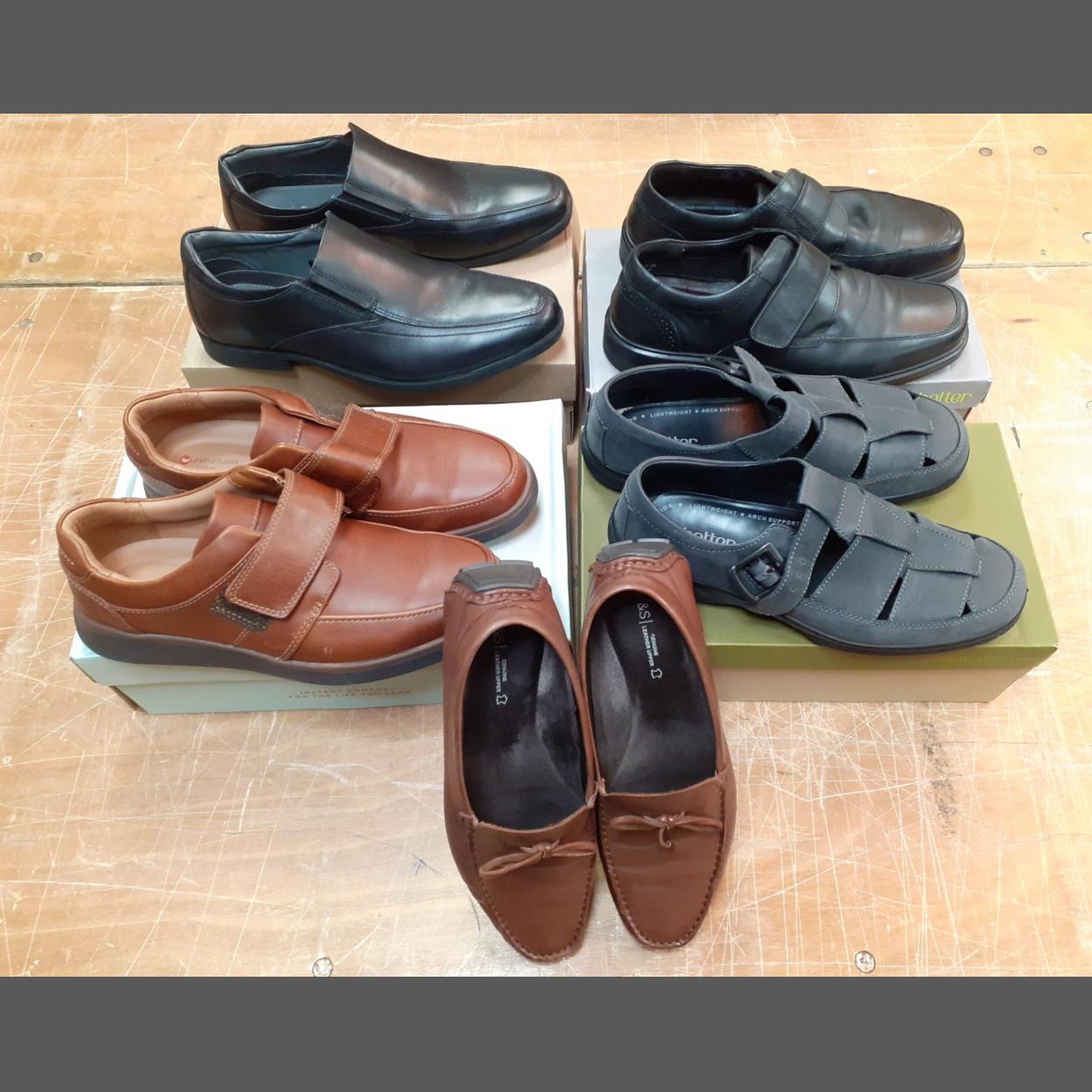 A good selection of gents shoes size nine and a half and one pair of ten and a half brands to include VLARKS, HOTTER. All in good condition, 4 pairs in boxes (RRP £70 a pair!)