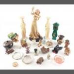 Collection of decorative ornaments to include RCR dolphin, blue coloured glass bird, Canadian 'AL WOLF', Gazelle with interesting African themes and a Limoges vase (H: 17cm approx)