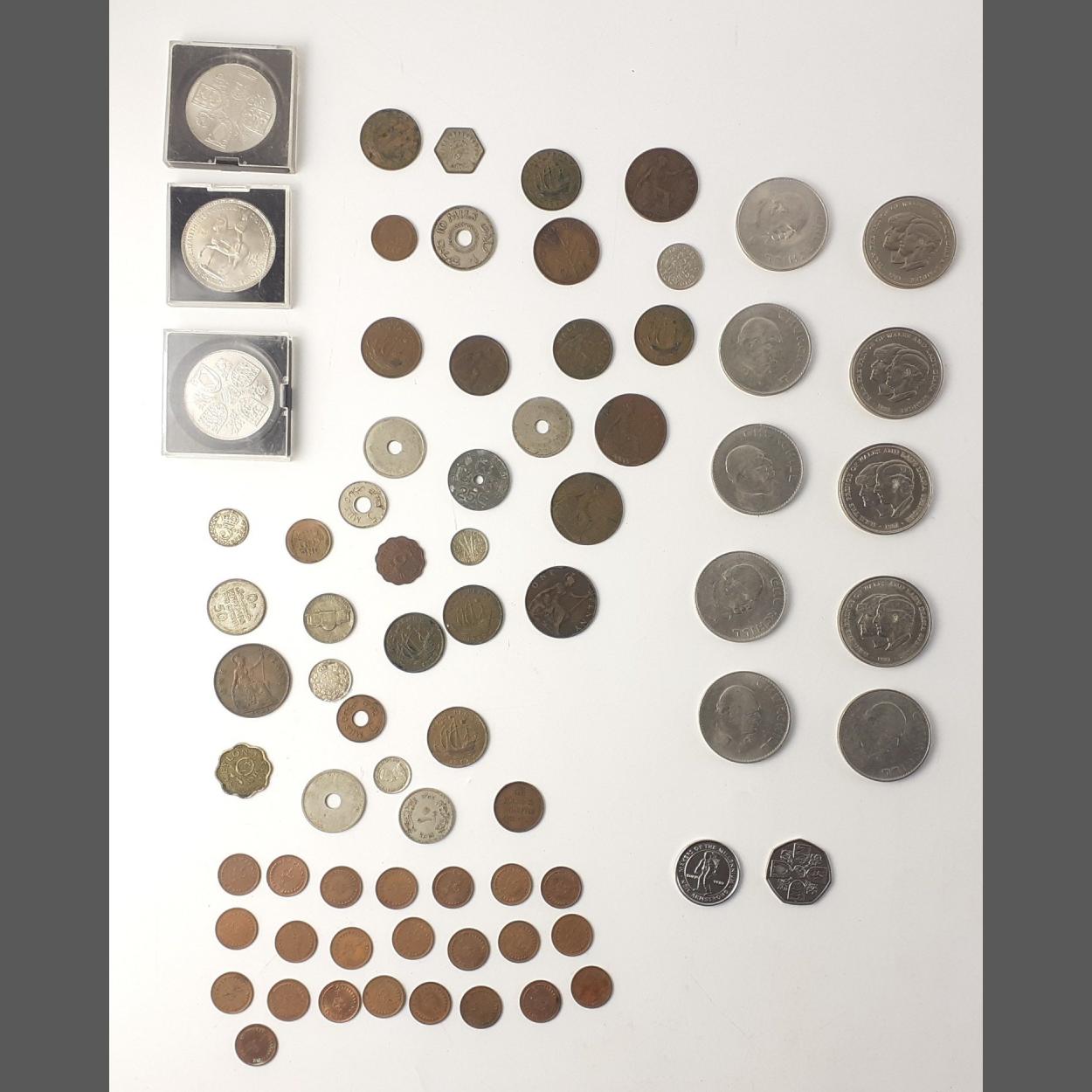 A quantity of UK Crowns and other obsolete coinage. A few small silver Threepenny noted.