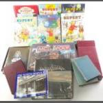 Small mixed lot. MONOPOLY Edinburgh Edition boxed sealed. Old North Berwick signed by author, compendium set, Rupert Annuals and others.