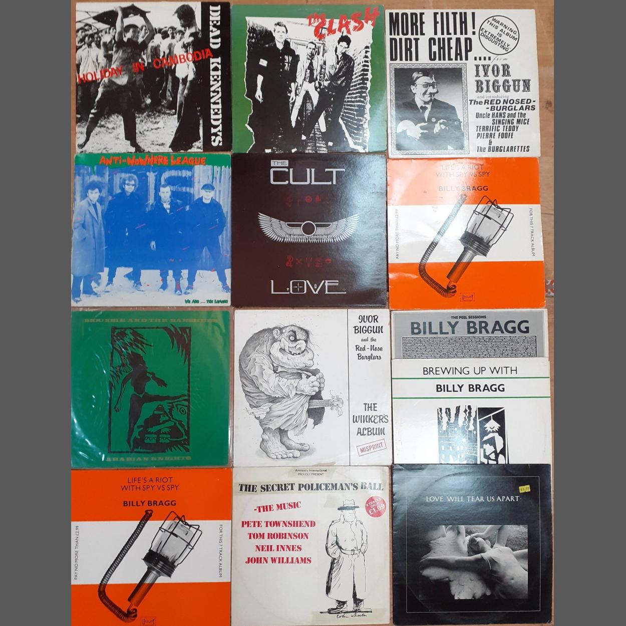 A good selection of Punk and Rock albums. To include The Dead Kennedys, The Cult, Joy Division, The Clash, Siouxsie, And The Banshees, Anti Nowhere League also Ivor Biggun and Billy Bragg. 12 albums, some minor cover wear noted.