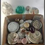 A mixed lot of part tea sets, various glassware, Royal Doulton plate, trinket boxes etc.