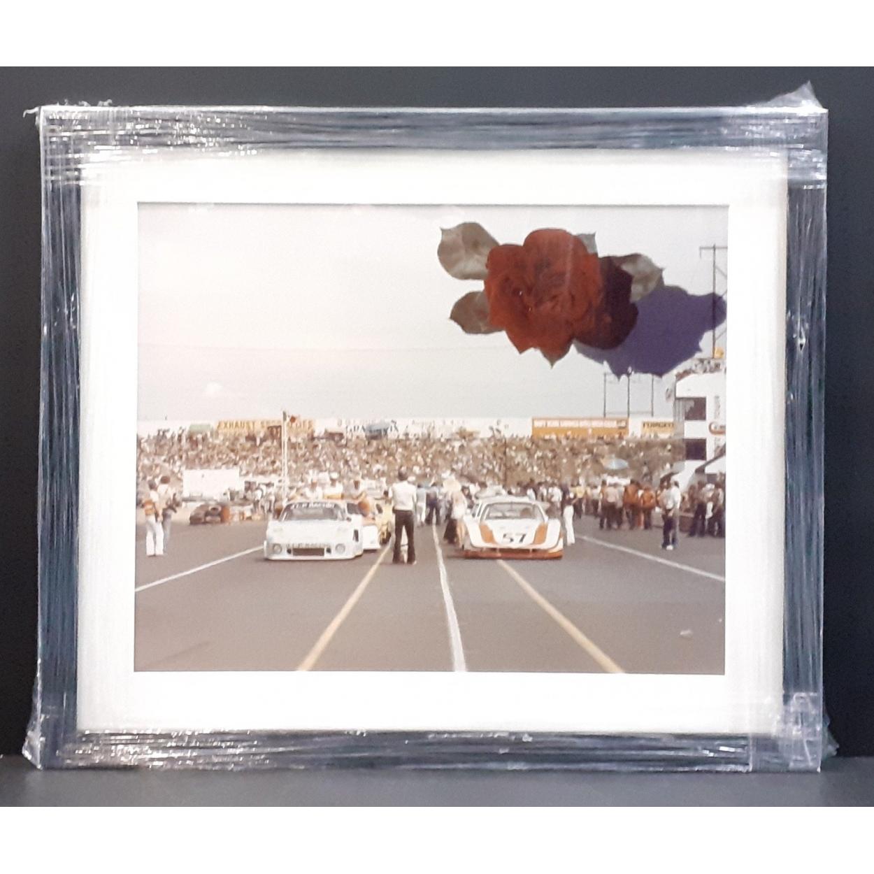 Large Motor Racing art print . American Indy Cart interest showing J.L.P. Racing on grid possibly at Daytona. Frame size 65cm x 55cm