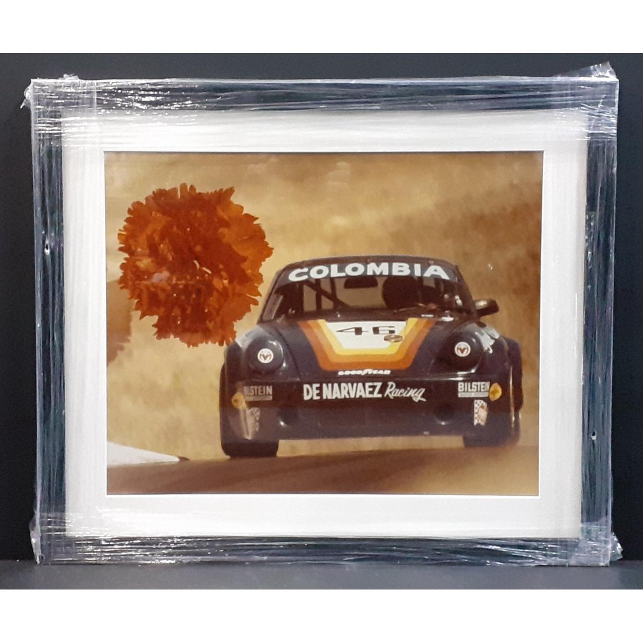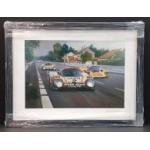 Motor Racing Art Print. PORSCHE RSR911 in action driven by Colombian driver MAURICIO DE NARVAEZ Likely in Le Mans, his best finish was fourth. Frame size 65cm x 55cm