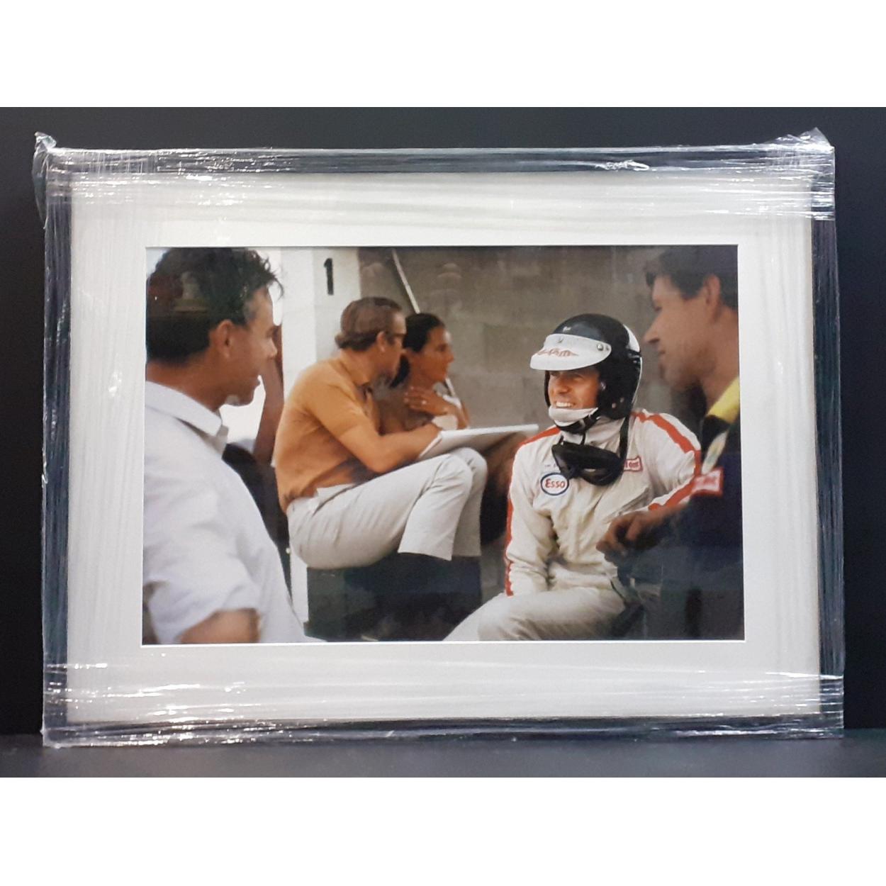 JIM CLARK Motor racing Interest Art print. A beautiful framed print of borders Legend and F1 World Champion JIM CLARK in discussion with Keith Duckworth and team. Printed on high quality heavyweight paper Frame size 79cm x 59cm. A stunning piece ready to hang.