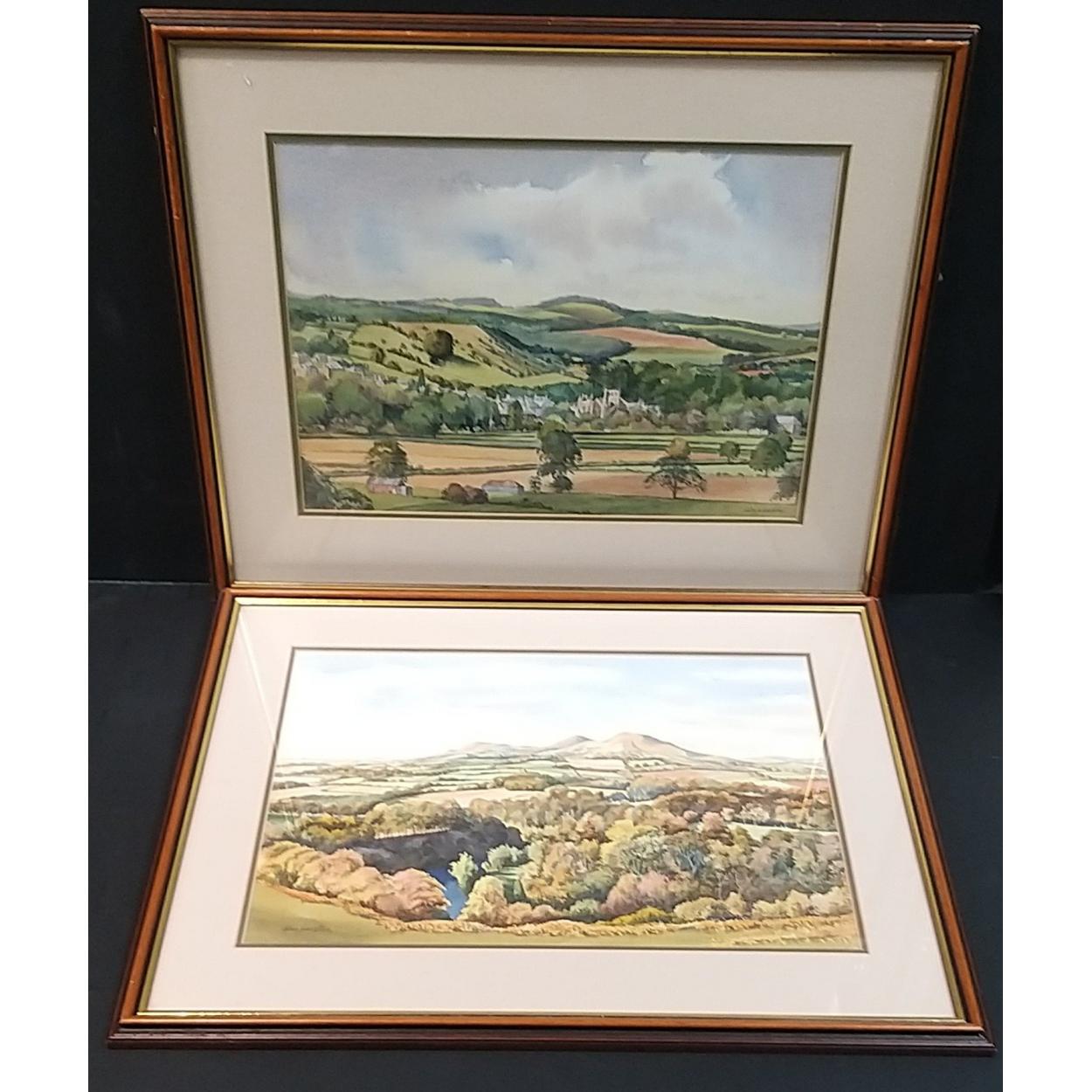 Two watercolours by ERIC JOHNSTON. One of Scots View and the other of MELROSE. Both 67cm x 55cm approx.
