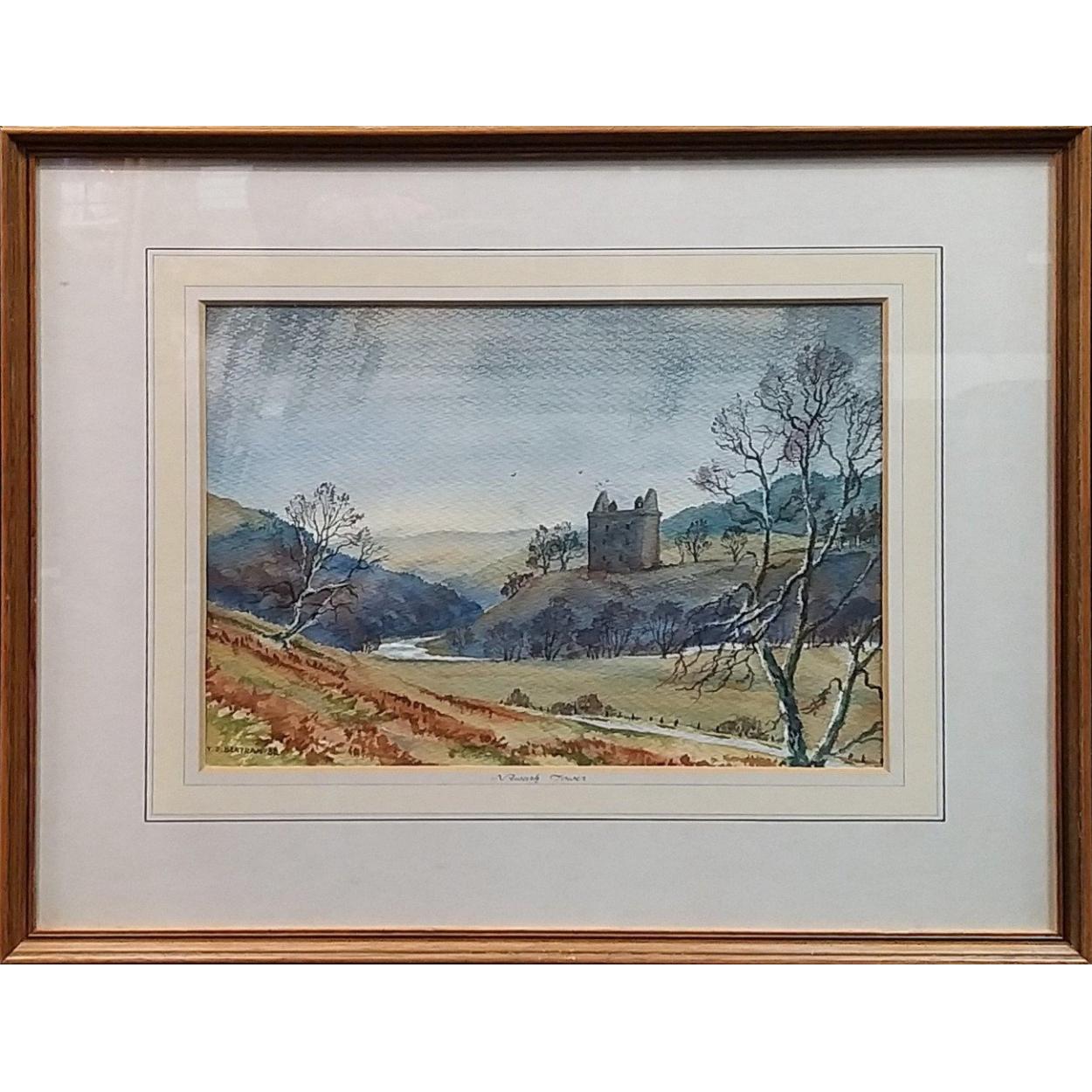 A T.J. BERTRAM watercolour of NEWARK TOWER by Selkirk. Measures 60cm x 49cm in frame