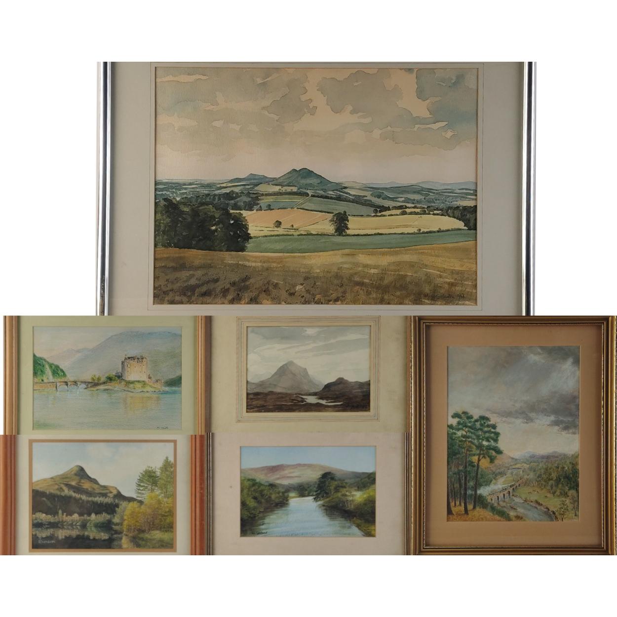 Six attractive framed watercolours One of Eilean Donan, and others of Borders Interest including Scotts View.