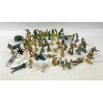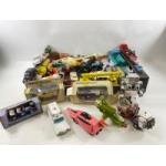 A large mixed selection of die-cast model cars etc to include makes such as BRITAINS, MATCHBOX, CORGI DINKY, TRIANG etc A Britains Massey Ferguson 595, A Dinky Austin Black Taxi, Dinky Coles Hydra Truck 150T, Dinky Refuse Wagon, Triang Vanwall MM/C55 , Matchbox Speedkings K81/K48 350 slc Mercedes Police Car and a Corgi Ford Transit Wrecker and a c1980 RC DILLE BUCK ROGERS STAR FIGHTER, Corgi Moonracker Space Shuttle etc etc - loads in this lot! - all in a playworn condition