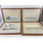 Four screenprint works by DEREK JONES to include EARLY MORNING, ALNWICK (1985 copy 21 of 22), EVENING GLOW, AYTON (1986 copy 9 of 30), LINDISFARNE AND BAMBOROUGH (1986 copy 6 of 30) , COOL EVENING (1986 copy 22 of 28) each frame size 51x40cm, picture size 32x20cm