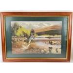 A framed print of a VIEW FROM ROTHIEMURCUS by KEITH SHACKLETON 1994 frame size 72x52cm, picture size 52x34cm