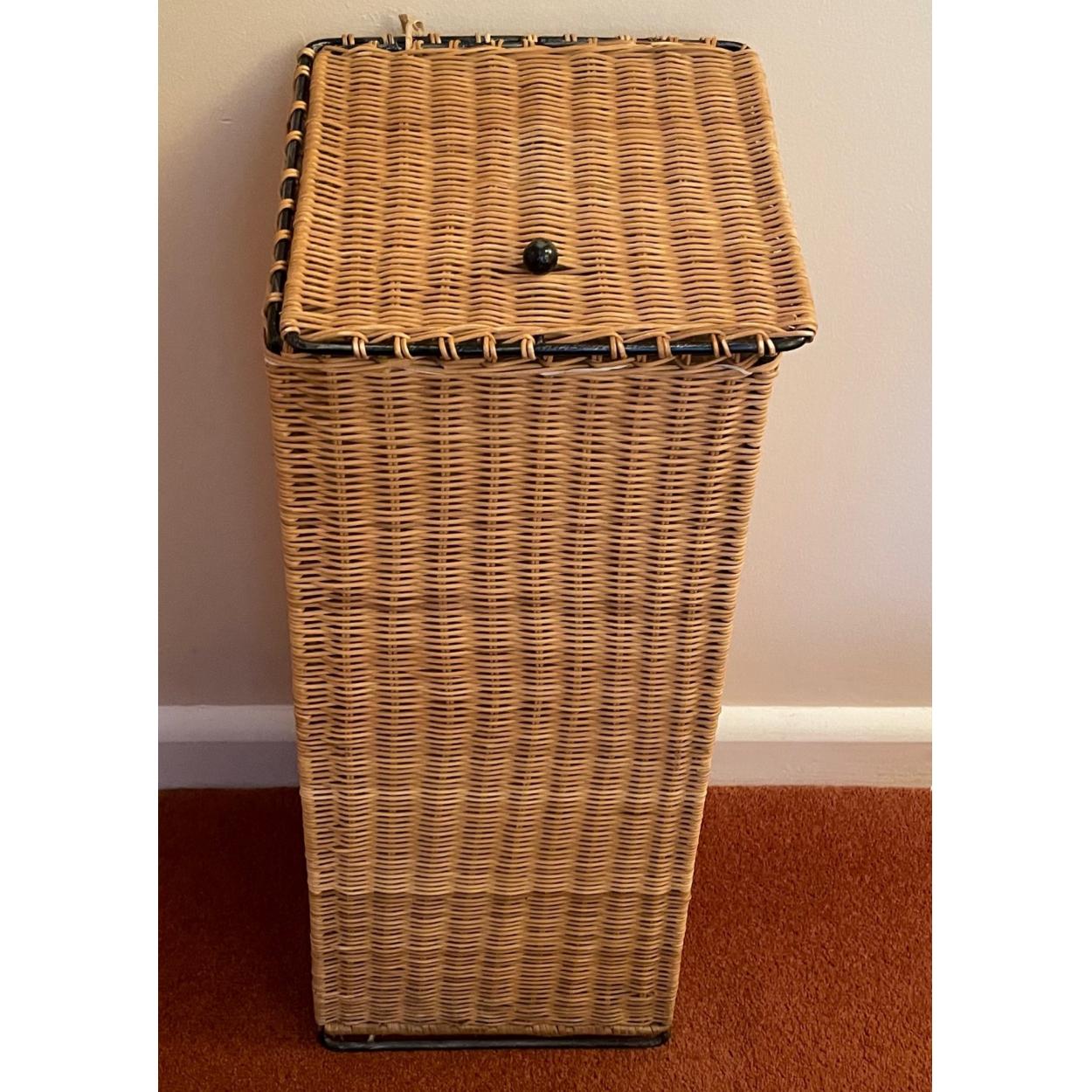 A nice tall standing modern fabric lined LAUNDRY BASKET with hinged lid - height 80cm tall x 30cm square