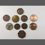 A collection of ten masonic penny tokens to include lodges, 375, 599, 1753, 579, 187, 919, 5, 597 and two blank. All in good collectible condition.