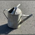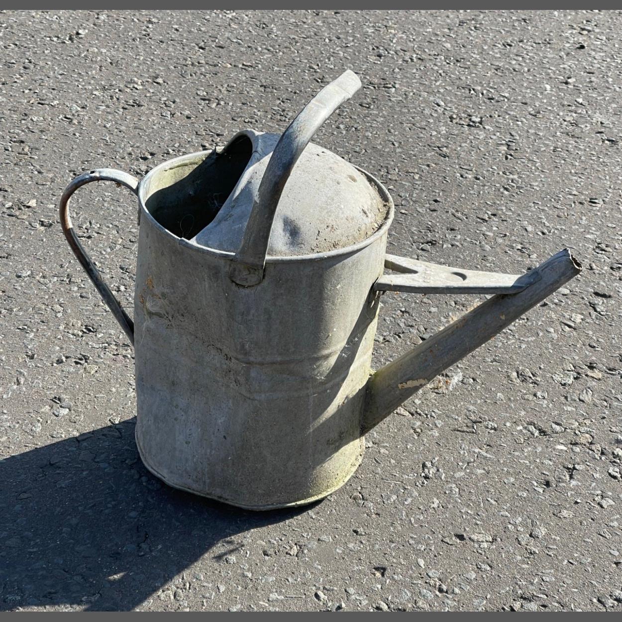 A galvanised watering can - a great garden feature! - the handle is a bit bent but otherwise a sturdy garden friend!