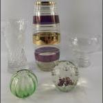 A collection of pretty glass items to include a 1970s style Romanian 26cm vase, a floral etched crystal vase, a paperweight and others.