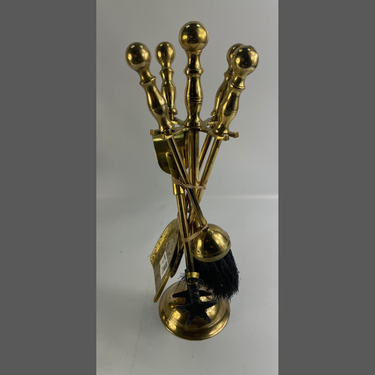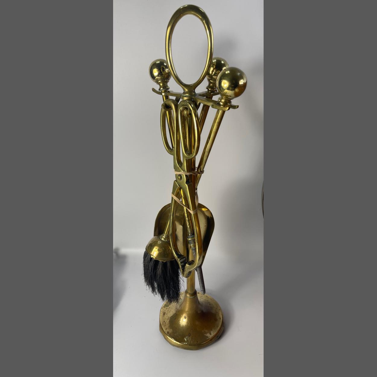 VINTAGE - A BIJOU 4 piece brass companion set standing 39cm high