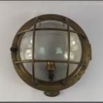 A super vintage brass round bulkhead lamp / lantern. 24cm across and in good condition.
