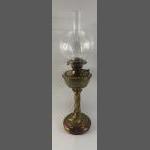 A substantial brass oil lamp with shade and chimney. Stands 60cm (with chimney ) and in good condition.