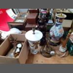 Light up your life at Peebles Auction House - a super collection of modern and vintage lamps to include a tall carved wooden Oriental gentleman (48cm exc. fitting approx), a rather nice ceramic bulbous lamp base standing 45cm approx (exc fitting), an urn shaped lamp base 30cm (exc fitting), and six other lamp bases