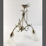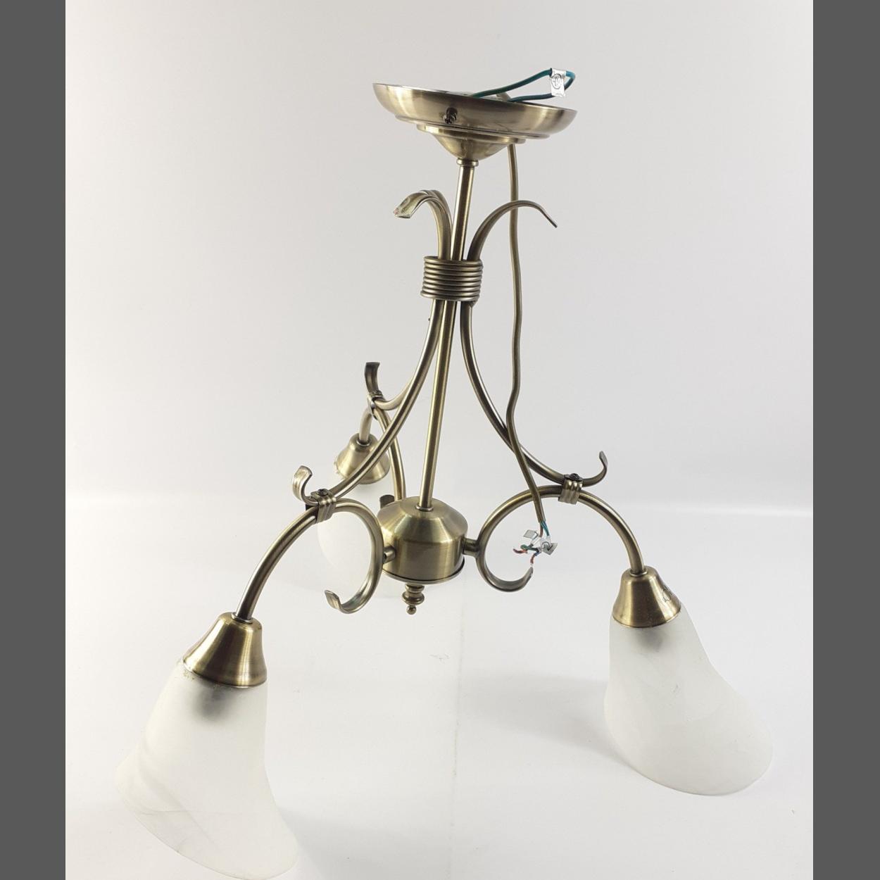 A triple shaded pendant brass look ceiling light with 3 opaque tulip shades 45cm high