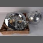Two boxed light fittings one a chrome ball shade with fittings approx 20cm tall with and the other with opalescent glass ceiling light