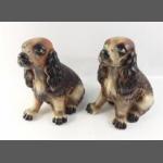 A pair of plaster spaniels with appealing eyes, standing 28cm high, no damage