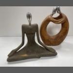 Two modern ornamental figures, the first with an entwined couple stands approx 30cm tall, the other seated Buddha figure stands 28cm tall x 32cm wide approx