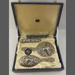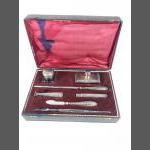 A rather nice ANTIQUE 800 SILVER desk set in a fitted box. All parts present, pieces in good order with rubbed marks. Total gross weight 203g approx