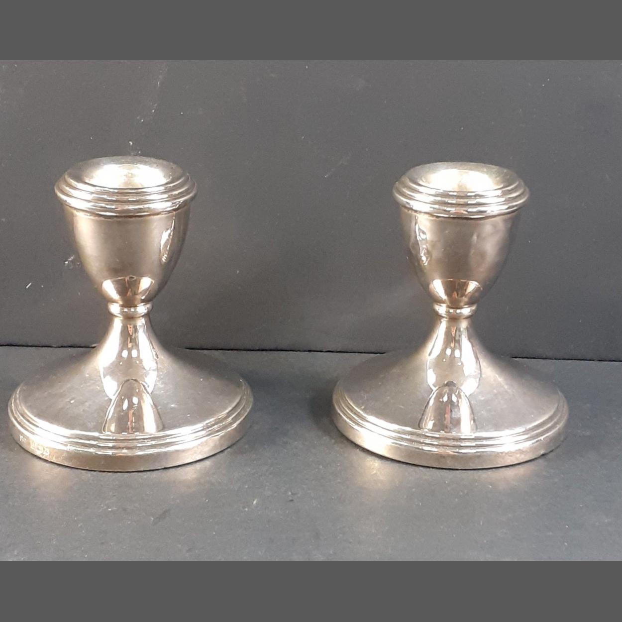 A lovely pair of small 8cm SOLID SILVER candle stick holders with felt bases with hallmarks for Birmingham 1971. Total gross weight 230g approx.