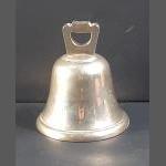 AN ANTIQUE STERLING SILVER bell with hallmarks on body, handle and clapper for Birmingham 1927. Stands 8cm tall and weighs 160g approx. Maker DF