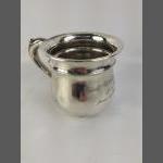A small tankard, SILVER hallmarked, Birmingham 1924, with inscription stands approx 8cm high, weight 90g approx, sports a few small dents