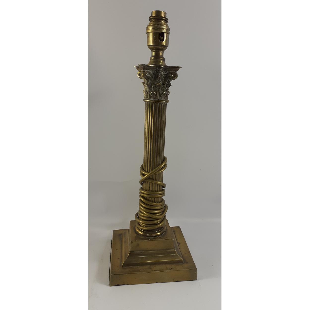 A nice solid brass Corinthian column lamp base standing 45cm tall and in nicely patinated condition.