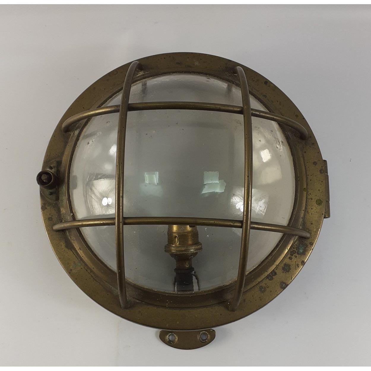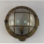 A super vintage brass round bulkhead lamp / lantern. 24cm across and in good condition.