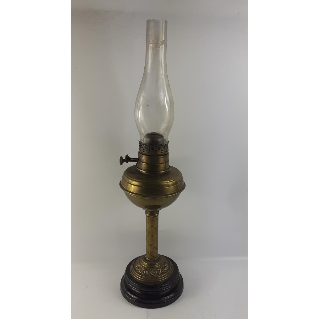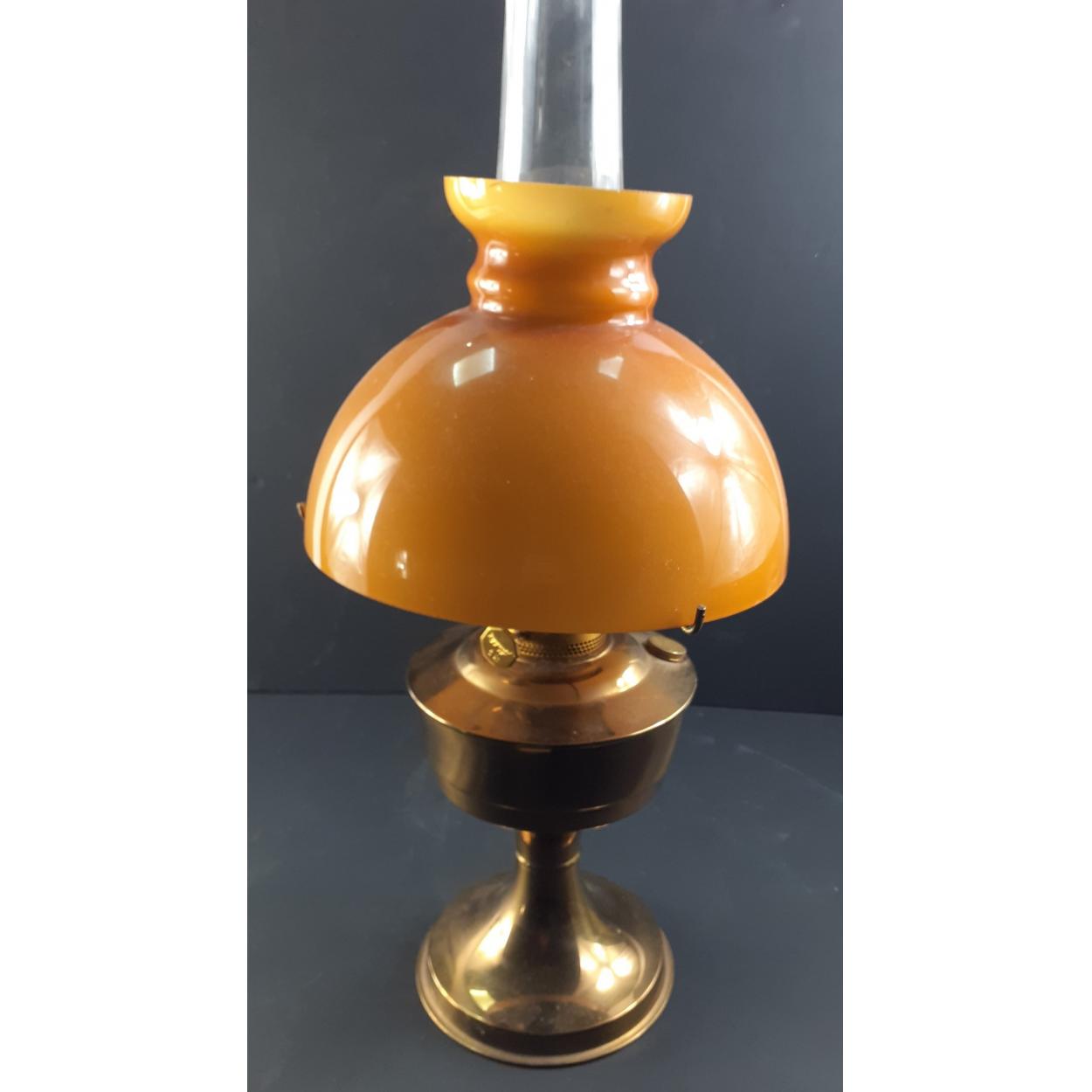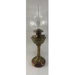 A substantial brass oil lamp with shade and chimney. Stands 60cm (with chimney ) and in good condition.