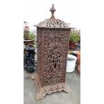 A rather impressive cast iron free-standing Cathedral sanctuary lantern stamped RIPPINGILLES ALBION LAMP. Stands 60cm high approx. Opening lid and rear door. A very impressive piece with light surface rusting finish.