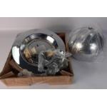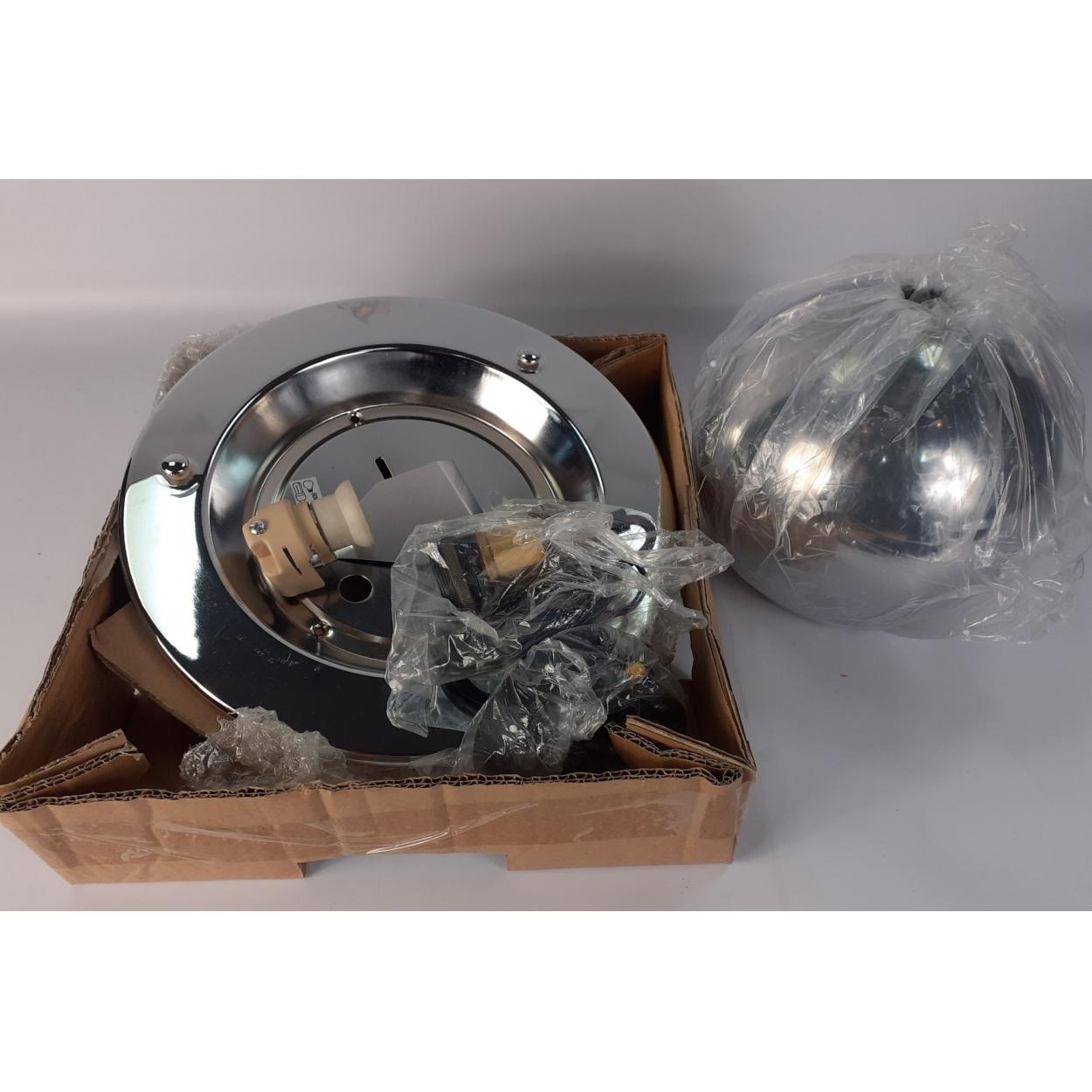 Two boxed light fittings one a chrome ball shade with fittings approx 20cm tall with and the other with opalescent glass ceiling light