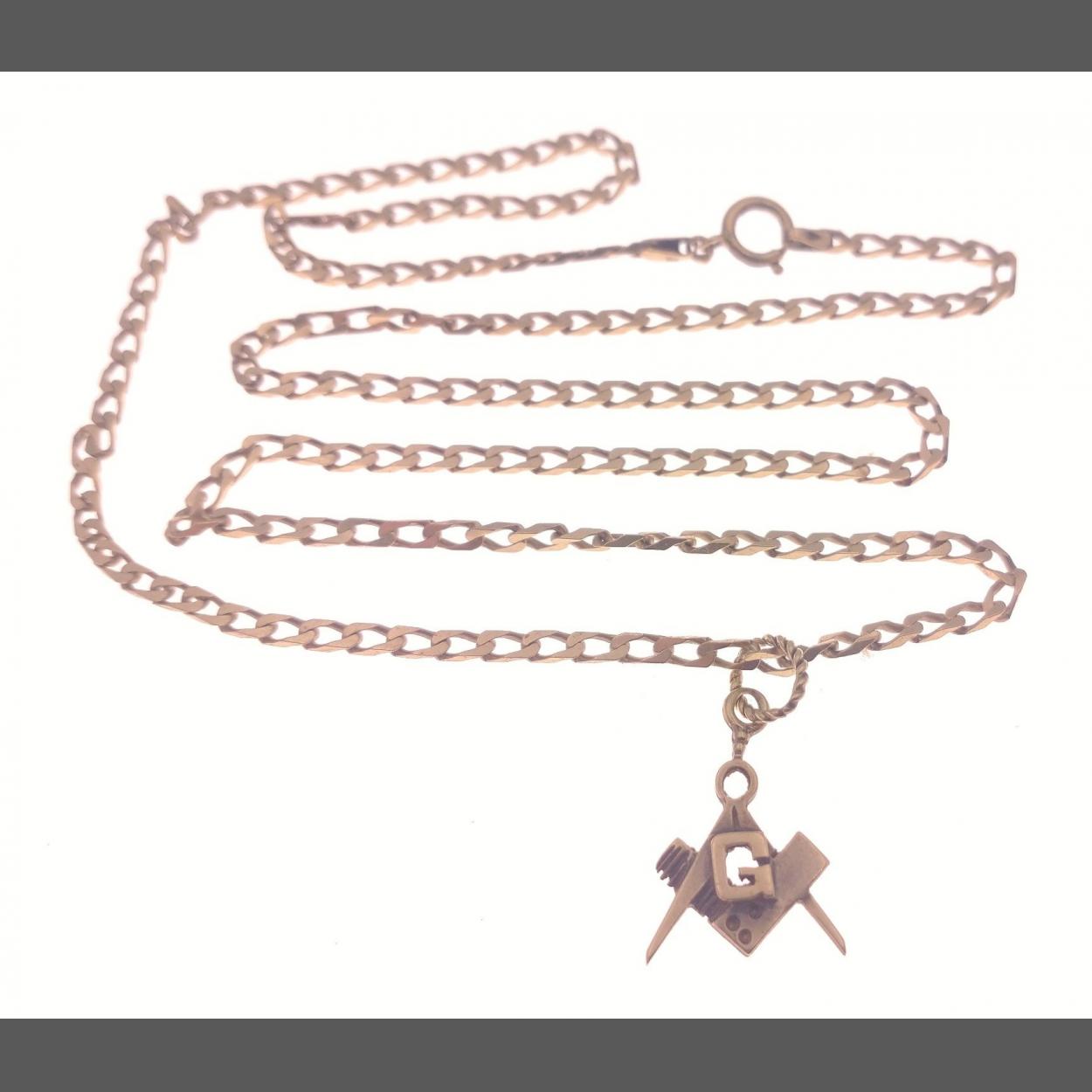 MASONIC INTEREST - A 375 stamped Masonic pendant on a 375 stamped chain - chain length 58cm Approx - weight 9.045g Approx