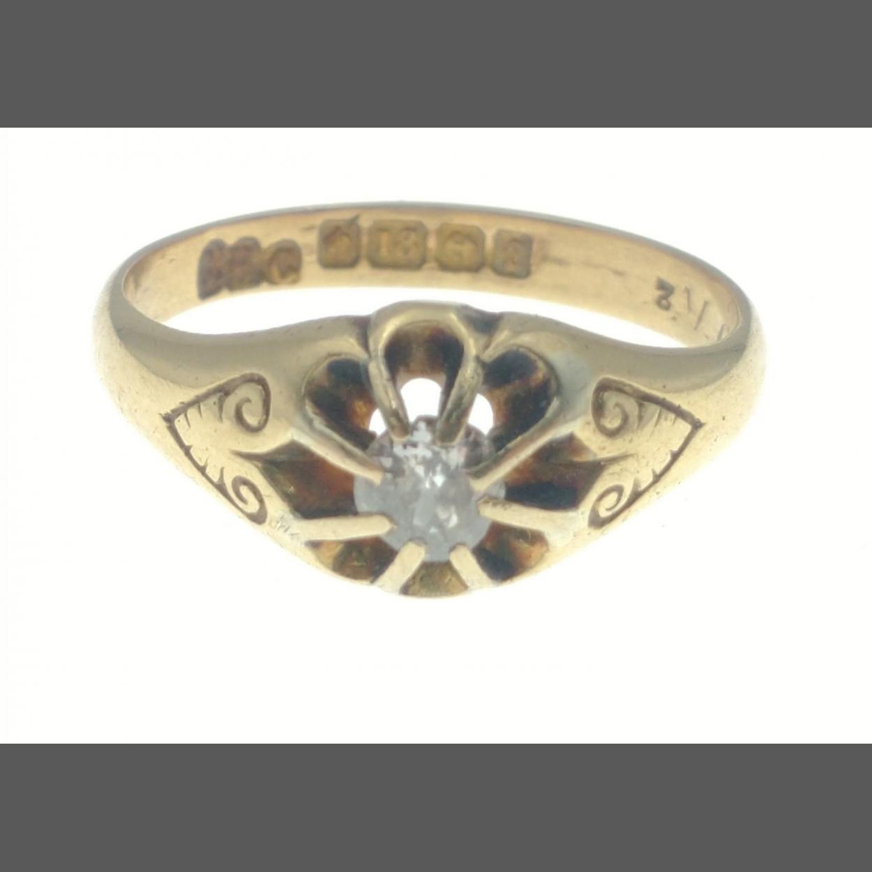 An 18ct stamped yellow gold ring with a solitaire diamond centred - gross weight 4.30g approx - ring size P