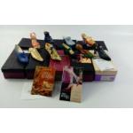 A delightful collection of 14 Just the Right Shoe collectible line of miniature high-heeled shoes designed by RAINE, also known as Raine Willitts. These miniatures are highly detailed and very pretty.
