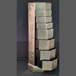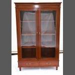 A rosewood document cabinet/bookcase. This has two glass doors that slide back into the cabinet with multiple adjustable shelves at the base. Beautifully made with traditional carpentry joints. Origin Baoan Guangdong Province. Condition very good.. H: 173cm W: 112cm D: 38cm