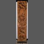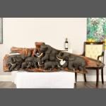 A large wood carving with the whole piece hand carved from an old tree root. Note. This skilful carving of elephants has been carved out of the wood and not stuck on. Circa 1980s Origin Northern Thailand. . H: 55cm W: 180cm D: 40cm