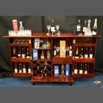 A hand made rosewood folding bar with various compartments for bottles glasses and accoutrements (contents for display only) Origin Shanghai Circa 1990 Condition very good.. H: 112cm W: 192cm D: 53cm
