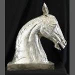A very large cast horse head on base made from aluminium. Very highly hand polished. A fabulous piece for any equestrian lover!. H: 61cm W: 41cm D: 26cm