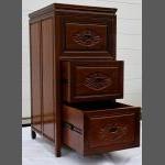 A solid rosewood filing cabinet which houses three lockable drawers and displays a bird and flower marquetry design, finished with a protective varnish Origin Baoan Guangdong Province Condition Good. H: 112cm W: 53cm D: 61cm