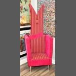 A very unusual art deco style chair, which has been very nicely upholstered with a vibrant material. A great accent piece which is in great condition for its age. Stands approximately 6ft tall.. H: 200cm W: 76cm D: 61cm